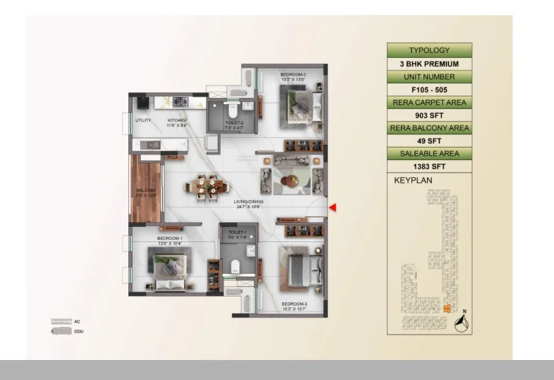 (Super Builtup Area) : 952 – 2676 sq.ft
