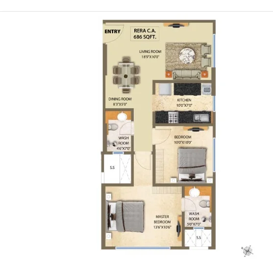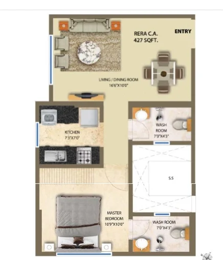 (Super Builtup Area) : 427 – 686 sq.ft