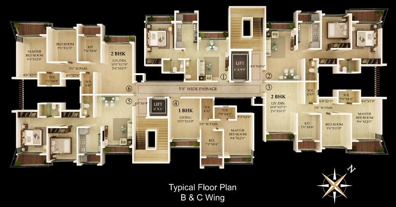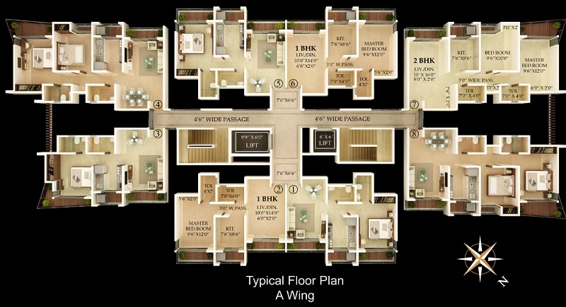 (Super Builtup Area) : 571 – 1040 sq.ft
