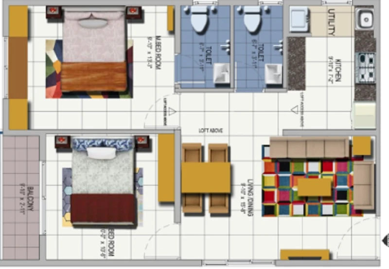 (Super Builtup Area) :- 810 – 1039 sq.ft