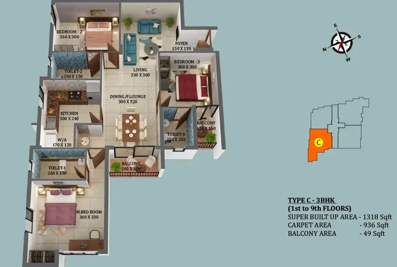 (Super Builtup Area) : 902 – 1455 sq.ft