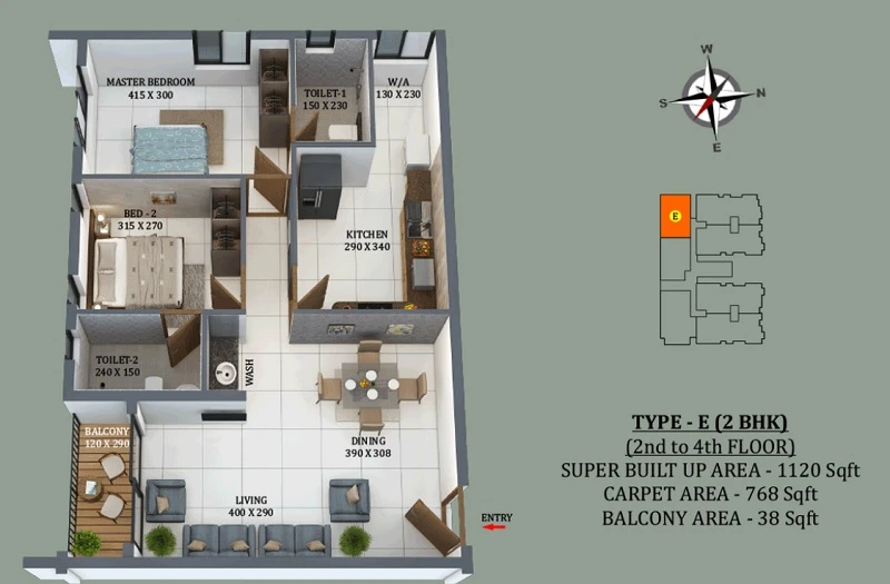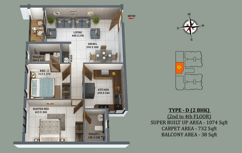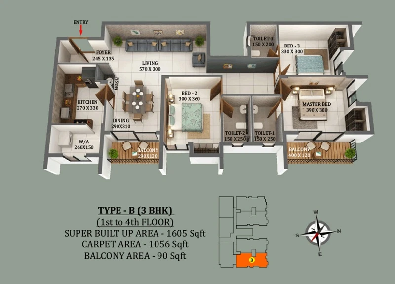 (Super Builtup Area) : 1074 – 1605 sq.ft