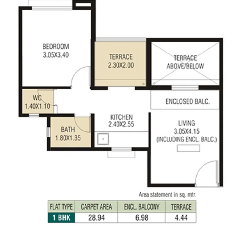 (Super Builtup Area) : 309 – 357 sq.ft