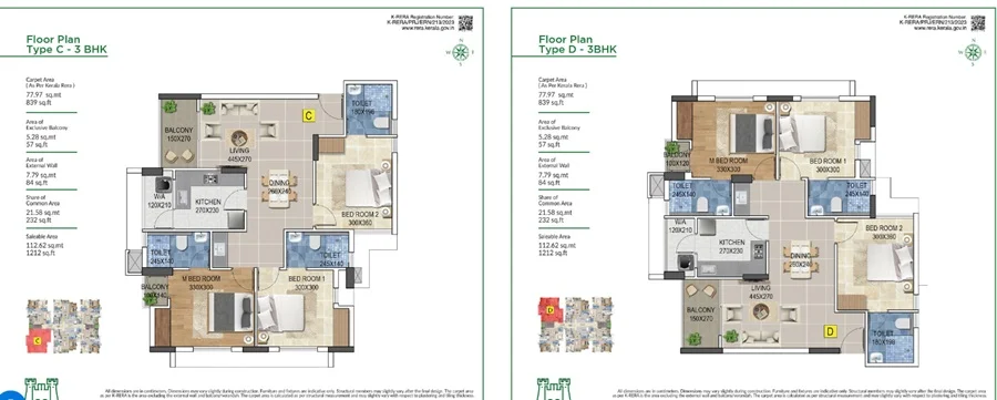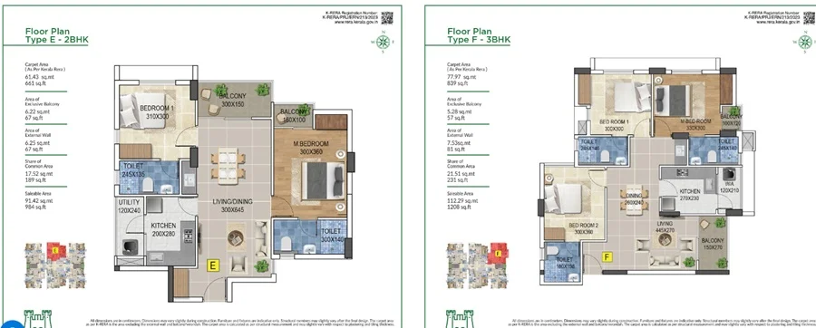 (Super Builtup Area) : 984 – 1212 sq.ft