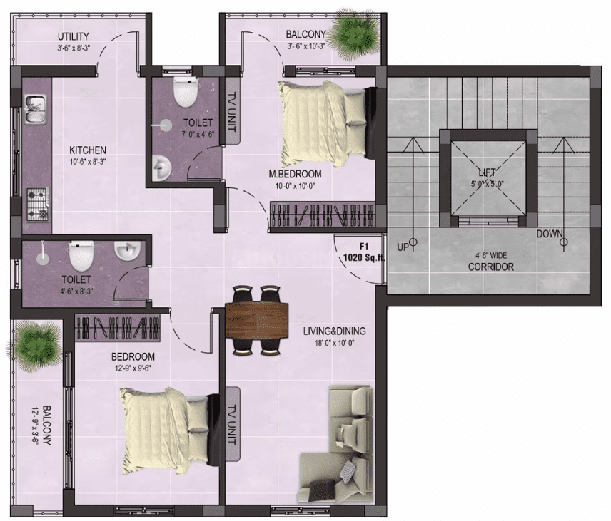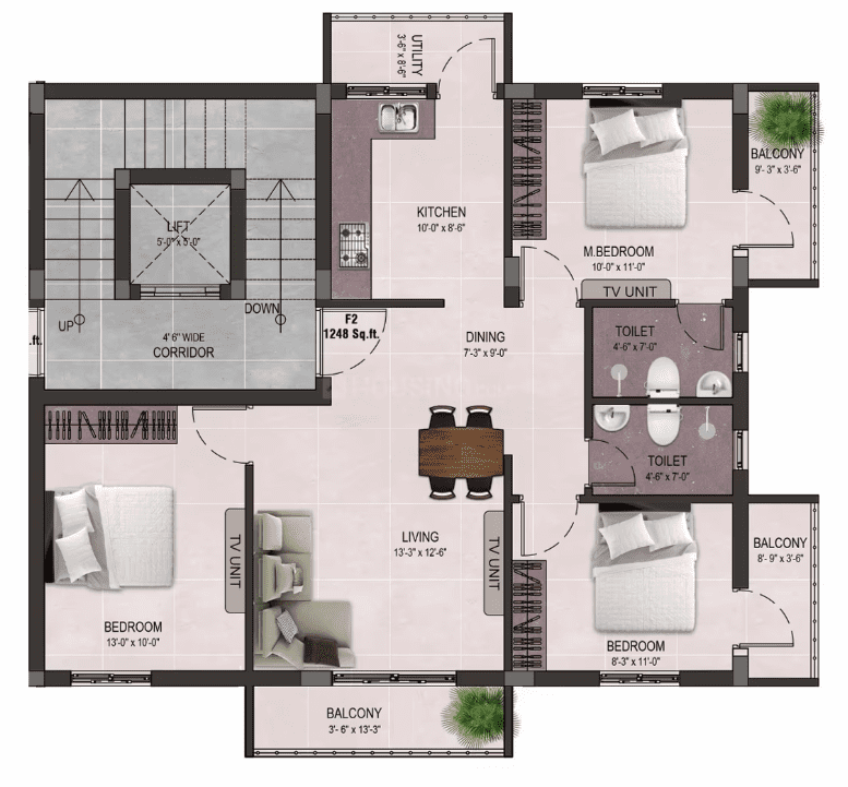 Sizes : 1020 – 1248 sq.ft.