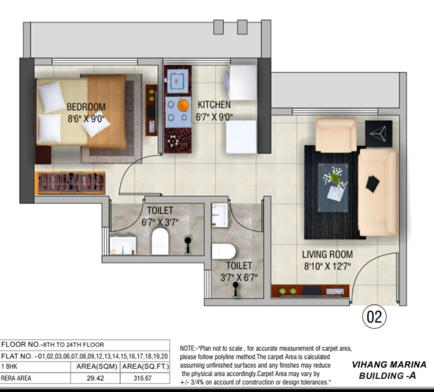 Super Builtup Area : 312 – 317 sq.ft