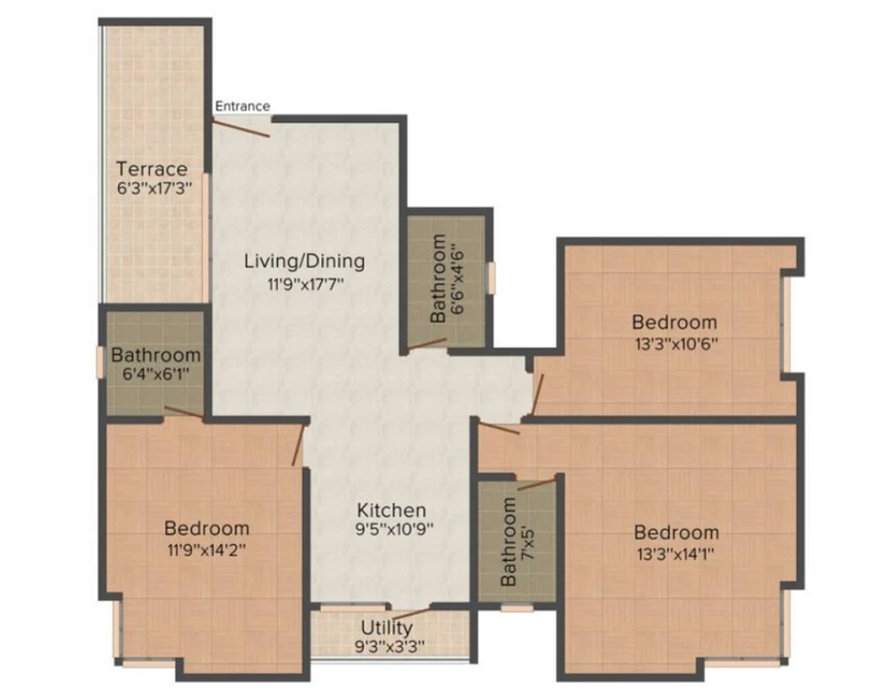 (Super Builtup Area) : 949 – 1496 sq.ft