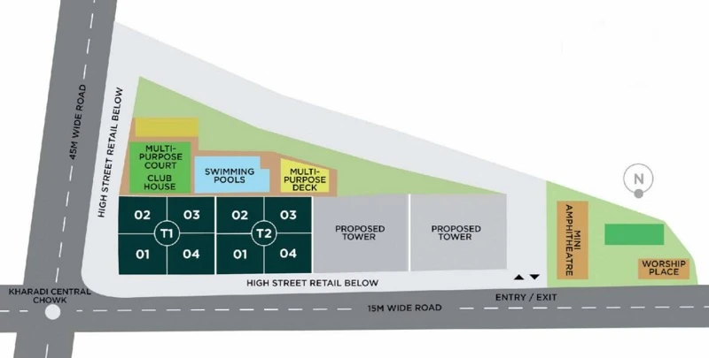In terms of facilities, Vilas Palladio Kharadi Central is loaded with multiple offerings such as Gymnasium, Power Backup. For families with kids, there is Children Play Area. It is a Gated Community. Immerse yourself in a world of sports with provisions for Tennis Court, Basketball court, Badminton Court, Cycling. There is 24×7 Security. It is one of the most admired properties for Sale in Pune and admired properties for Sale in Kharadi.