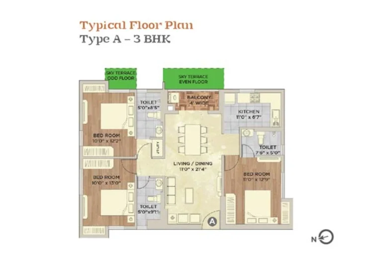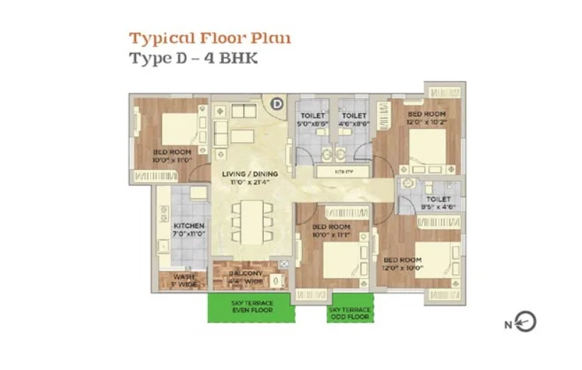 (Super Builtup Area) : 760 – 2984 sq.ft