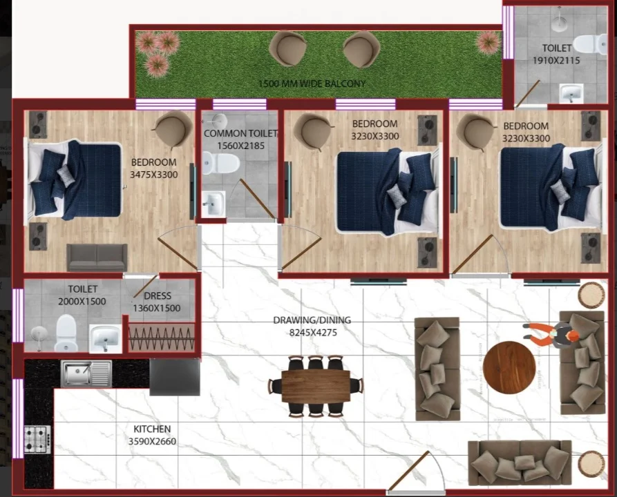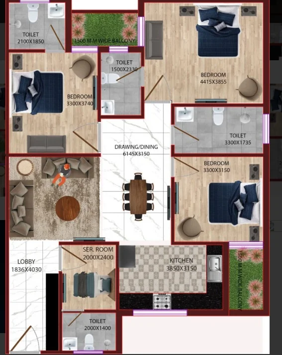 (Super Builtup Area) : 1400 – 2400 sq.ft