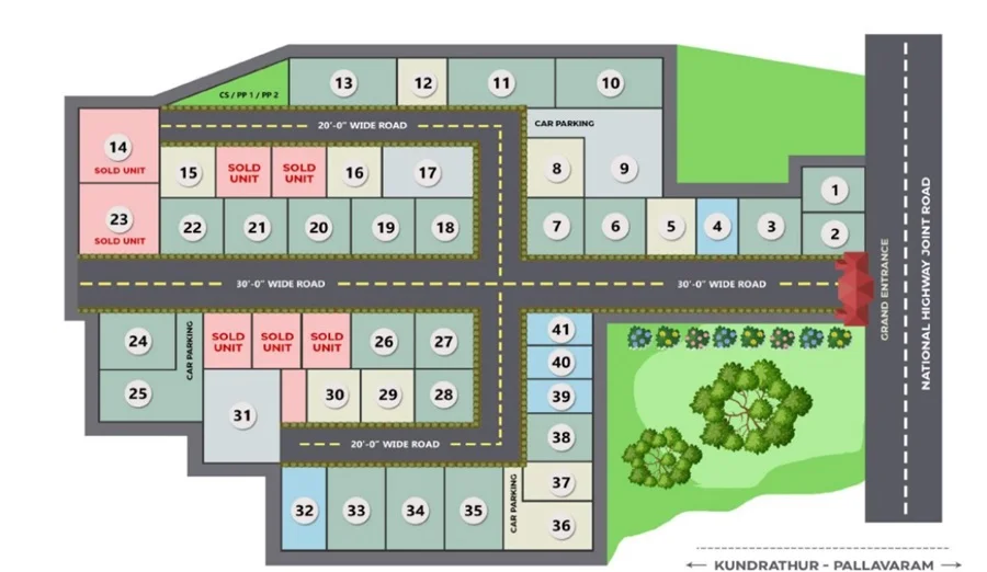VNCT Brookside Residences Residential project in Chennai offering Villa for Sale in Pammal. The property offers 2&3BHK Villa meticulously planned that guarantee a hassle-free lifestyle. As per the area plan the size range 850.00 sq.ft. – 1500.00 sq.ft. Possession date is Nov 2028. VNCT Brookside Residences offers prices suitable for both luxurious and affordable Villa in Chennai. VNCT Brookside Residences is located Pammal. This is considered as best Villa for Sale in Chennai and best Villa for Sale in Pammal.