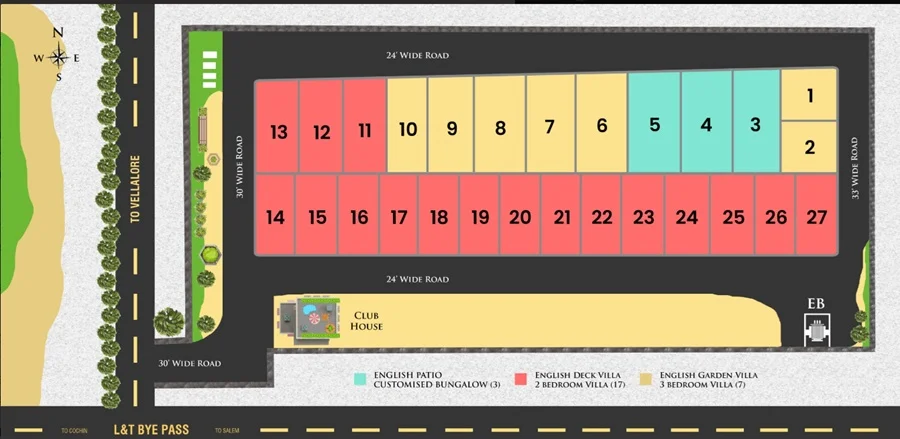 In terms of facilities, VNCT English Bungalows is loaded with multiple offerings such as Gymnasium, Power Backup. For families with kids, there is Children Play Area. It is a Gated Community. There is 24×7 Security. It is one of the most admired properties in India.