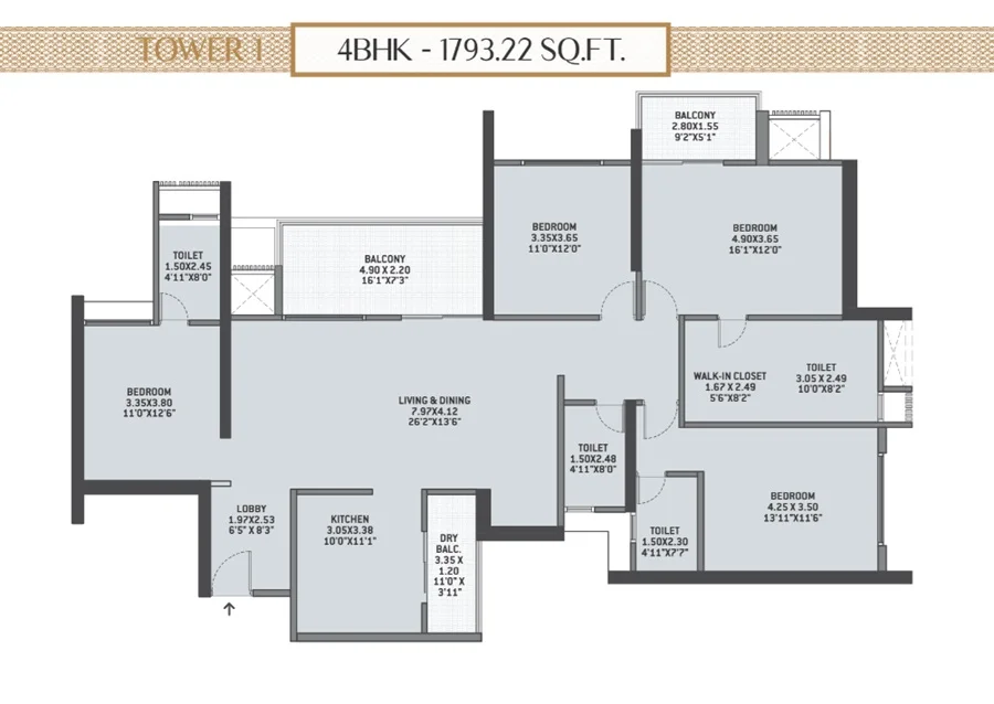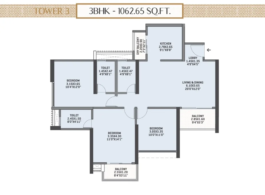 (Super Builtup Area) : 677 – 1793 sq.ft