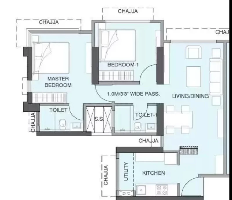 Super Builtup Area : 624 – 918 sq.ft